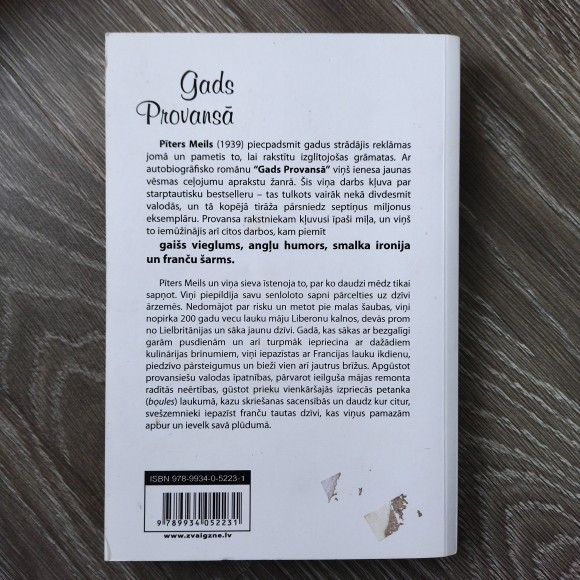 Lieliska lasāmviela. Intelektuālās komēdijas stilā rakstīts darbs. Meils, stāstot par vietējo ļaužu paradumiem un tikumiem, ir asprātīgi dzēlīgs, taču aiz šiem jokiem skaidri jaušamas viņa simpātijas pret provansiešu dzīvesveidu un reģiona dabu. Autoram ļoti labi ir izdevies aprakstīt Francijas dabu, kas man kā lasītājam ļauj aizdomāties par to, ka varbūt ir vērts savu nākamo atvaļinājumu pavadīt Provansā. Grāmatā aprakstītie franču ēšanas paradumi ļauj novērtēt to, ka franči ēdienam pievērš lielu vērību. Grāmata kopumā ir interesanta un pozitīva....
