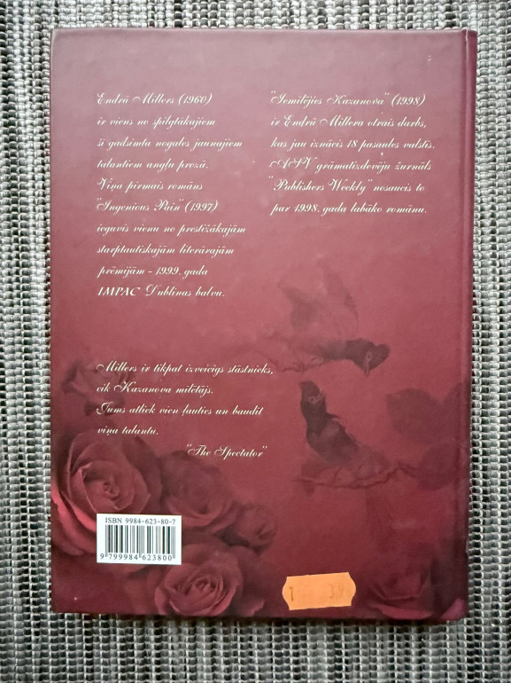 | “Iemīlējies Kazanova” ir Endrū Millera romāns par leģendāro Džakomo Kazanovu viņa dzīves nogalē. Trimdā dzīvodams, viņš atskatās uz pagātni, mīlestību un savām ilūzijām. Grāmata ir pārdomas par novecošanu, atmiņu, kaisli un cilvēka ievainojamību, atklājot Kazanovu nevis kā pavedēju, bet domājošu, jūtīgu personību. | |
