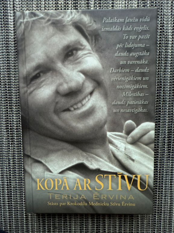 | "Kopā ar Stīvu" ir Terijas Ērvinas personisks stāsts par dzīvi ar Krokodilu mednieku Stīvu Ērvinu – pasaulslaveno dabas pētnieku. Grāmatā aprakstīti viņu kopīgie piedzīvojumi, dzīvnieku glābšana un ģimenes vērtības, atklājot aizrautību un pašatdevi vides aizsardzībā. | |