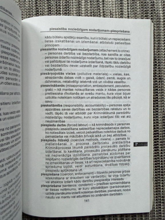 | Šī vārdnīca ir praktisks palīglīdzeklis juristiem, tulkotājiem un studentiem, kas strādā ar juridiskiem tekstiem abās valodās. Tajā apkopoti biežāk lietotie tiesību termini, definīcijas un to ekvivalenti latviešu un angļu valodā, lai nodrošinātu precizitāti dokumentu sagatavošanā un tulkošanā. | |