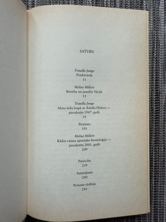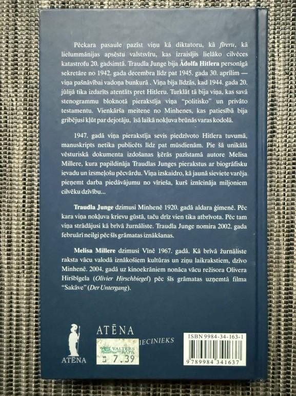 | Traudlas Junge grāmata “Līdz pēdējai stundai” ir personisks memuāru stāsts par dzīvi Hitlera tuvākajā apkārtnē Otrā pasaules kara beigās. Autore atklāj savas pieredzes, ikdienas baiļu un spriedzes brīžus, piedāvājot tiešu un emocionāli spēcīgu skatījumu uz vēsturisko traģēdiju. | |