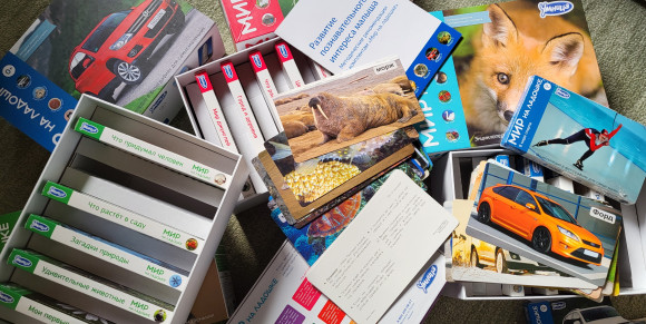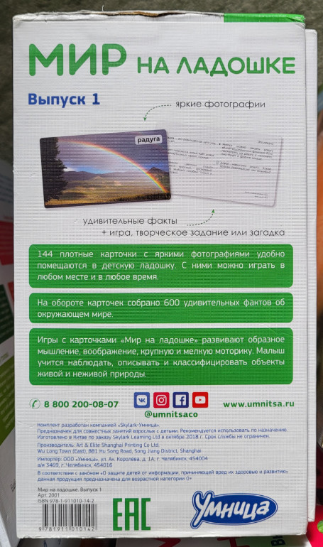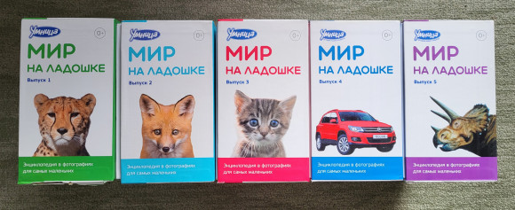 Мир на ладошке (все 5 комплектов). 30 тем, с которыми важно познакомить малыша. Каждую тему раскрывают 24 карточки с яркими, качественными иллюстрациями и самыми интересными фактами об объектах. Всего в полной коллекции собрано 720 карточек с фактами и играми. Это настоящая энциклопедия для самых маленьких. Заниматься по комплекту можно с самого рождения. Продаётся весь комплект. | |
