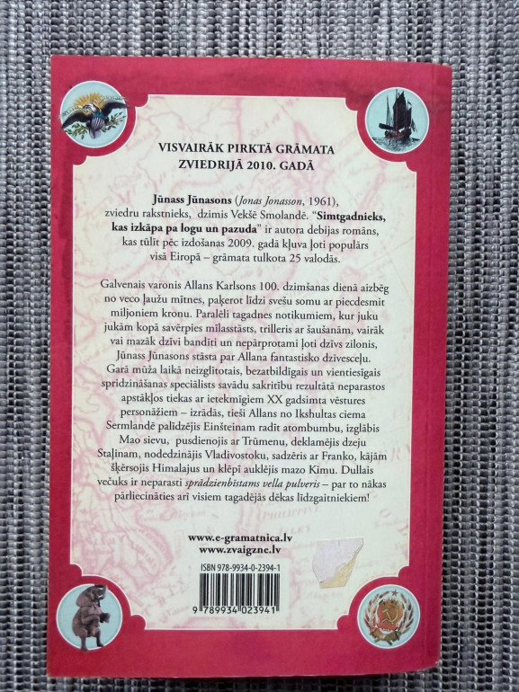 | Šī grāmata ir īpaša ar humoristisku un ironisku stilu. Tajā nopietni vēstures notikumi parādīti caur nejaušiem, komiski aprakstītiem piedzīvojumiem. Galvenais varonis ir neparasts – 100 gadus vecs vīrs, kurš saglabā mieru jebkurā situācijā un netieši ietekmē pasaules vēsturi. | |