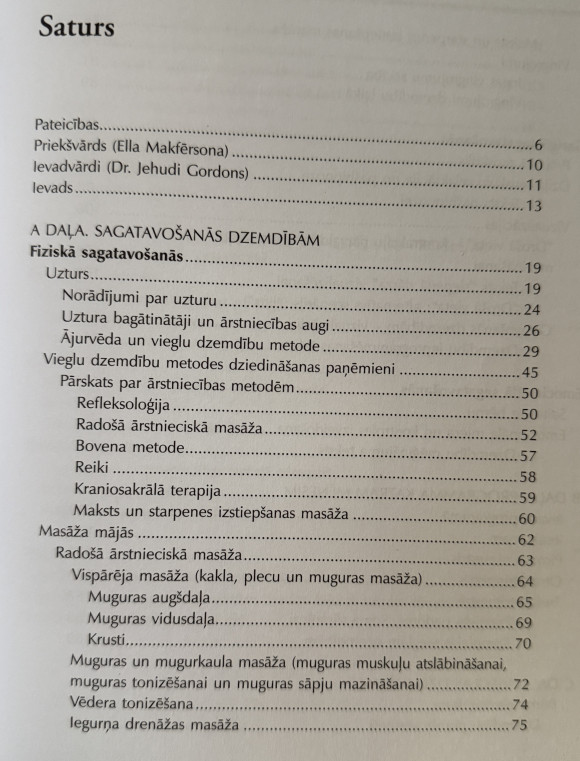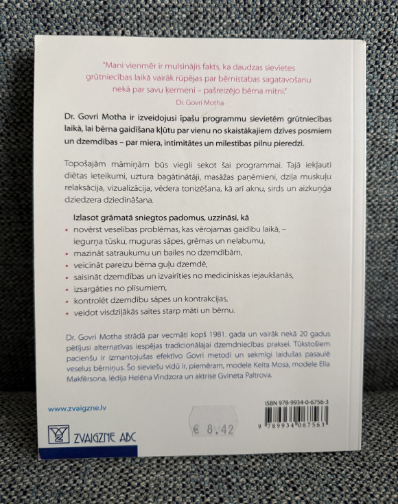 iekļauti diētas ieteikumi, uztura bagātinātāji, masāžas paņēmieni, dziļa muskuļu relaksācija, vizualizācija, vēdera tonizēšana, kā arī aknu, sirds un aizkuņģa dziedzera dziedināšana. Izlasot grāmatā sniegtos padomus, uzzināsi, kā • novērst veselības problēmas, kas vērojamas gaidību laikā, – iegurņa tūsku, muguras sāpes, grēmas un nelabumu, mazināt satraukumu un bailes no dzemdībām utt. | |