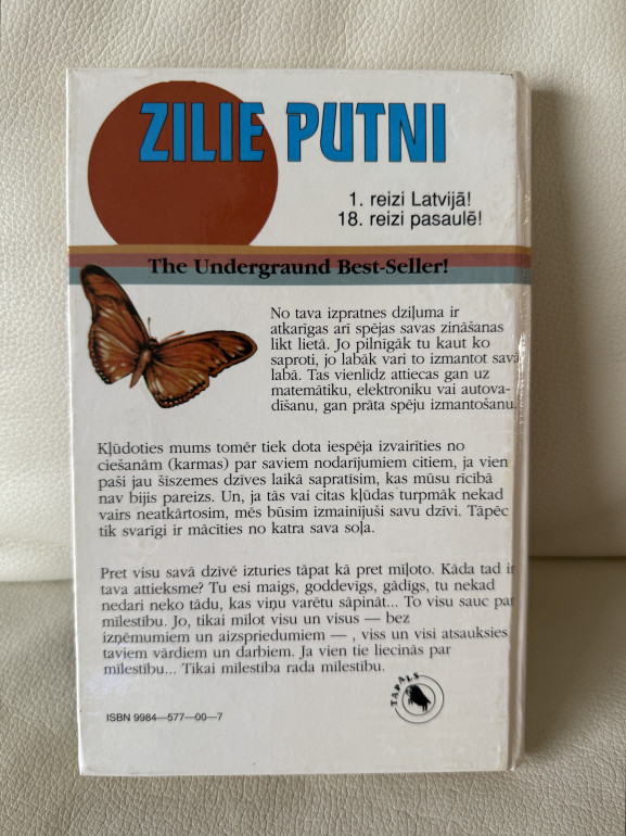 | Grāmata par mums ikvienam svarīgo tēmu – ikdienas realitātes skaidrojums. Šī grāmata ir tik neatkārtojama tieši ar tās galvenās domas pasniegšanas veidu – neaizmirstami skaists mīlasstāts, caur kuru tiek atklāti jautājumi par: reinkarnāciju, metafiziku, karmu, dziedniecību, mūsu ikdienu un attiecībām, kuras veidojam ar saviem līdzcilvēkiem. “ZILOS PUTNUS” var lasīt miljoniem reižu. | |