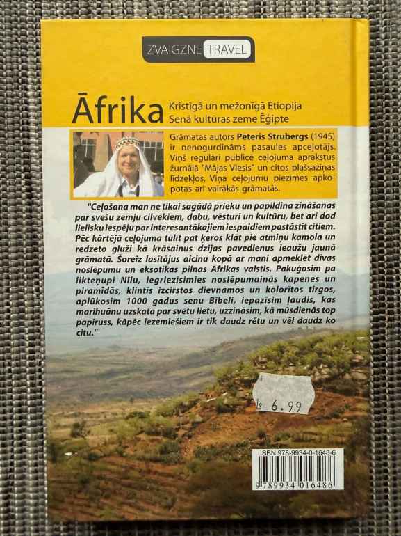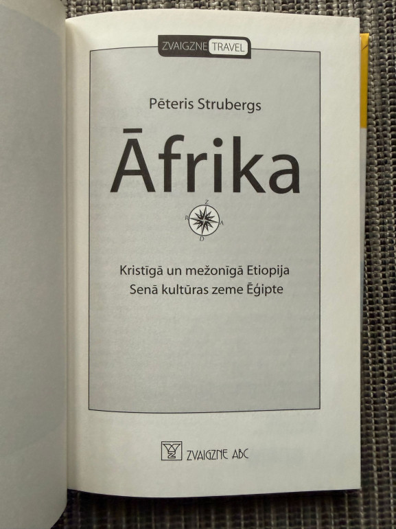 | Grāmata “Āfrika” ir ceļojumu piezīmes par Etiopiju un Ēģipti: Nīlas ceļš, piramīdas un kapenes, klinšu dievnami, kolorīti tirgi, papirusa tapšana un cilšu paražas. Pēteris Strubergs ar fotogrāfijām rāda vēstures un ikdienas ainavas; vizuāli bagāts stāsts “Zvaigzne travel” sērijā. | |