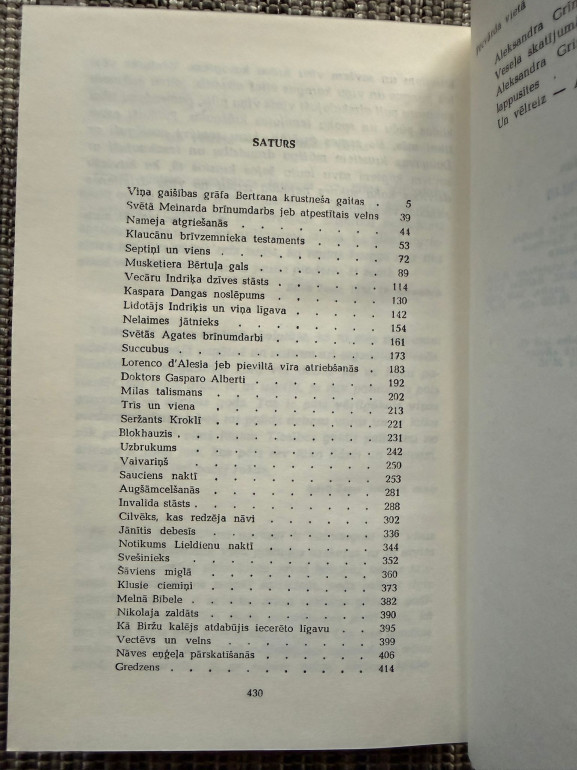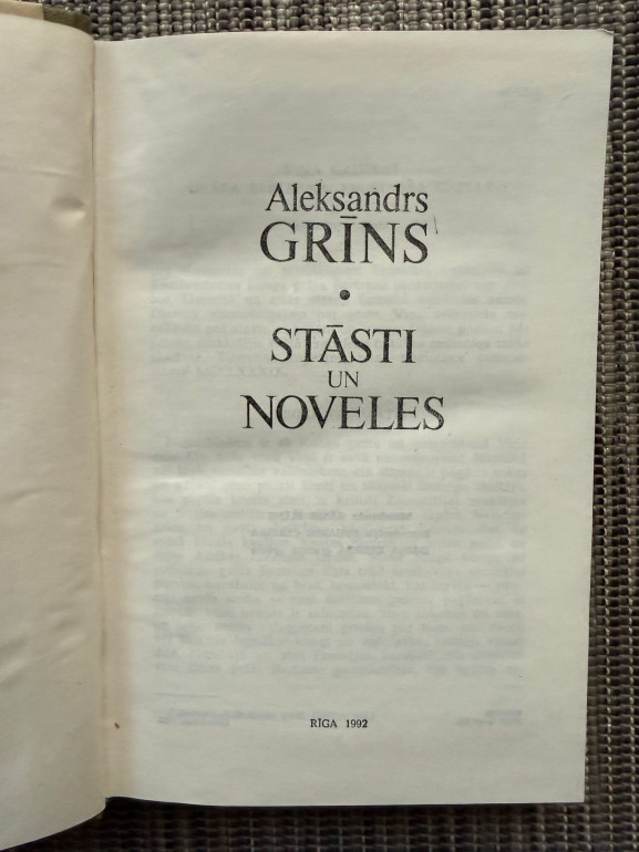 | Grāmata “Stāsti un noveles” (Aleksandrs Grīns) ir plašs krājums, kurā apkopoti autora īsprozas darbi – stāsti, noveles un leģendas. Tajos atklājas Grīna raksturīgais vēsturiskais romantisms, patriotisma motīvi un fantastiskais reālisms, savijot kara pieredzi ar tautas likteņiem, mīlestību un dramatiskām izvēlēm. Krājums uzskatāms par būtisku latviešu literatūras klasikas daļu | |