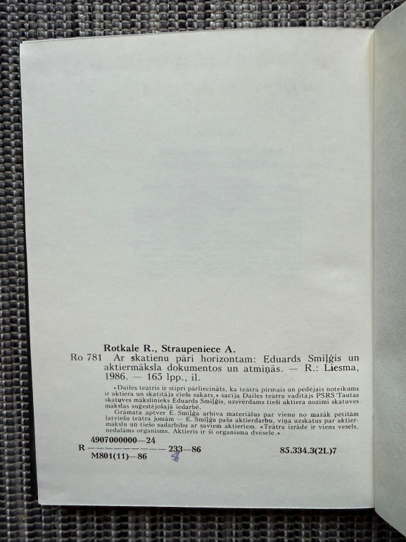 | Dokumentāls pētījums par Eduarda Smiļģa dzīvi un teātra darbu. Grāmata balstīta arhīvu materiālos, atmiņās un vēstures liecībās, izgaismojot Smiļģa personību un ieguldījumu latviešu teātrī. | |