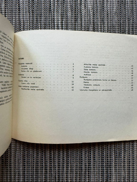Grāmata "Auduma rotāšana" (autore Margarita Šmite, izdevniecība Zvaigzne, 1974) ir praktisks ceļvedis par izšūšanas tehnikām un auduma dekorēšanu. Tajā apkopoti padomi un ilustrācijas par dažādiem rotāšanas paņēmieniem, kas piemēroti rokdarbu entuziastiem un amatniekiem | |
