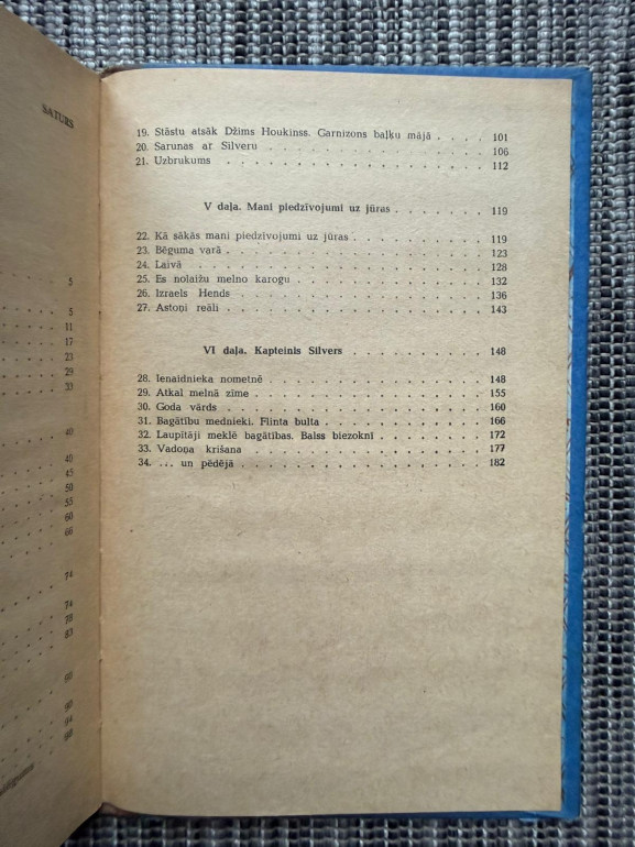 Klasisks pirātu piedzīvojumu romāns par Džimu Hokinss, kurš dodas meklēt noslēptu dārgumu salu. Stāsts pilns ar jūras ceļojumiem, nodevību un cīņu par bagātību. Ievērojams ar ikoniskajiem pirātu tēliem, piemēram, Garais Džons Silvers. | |