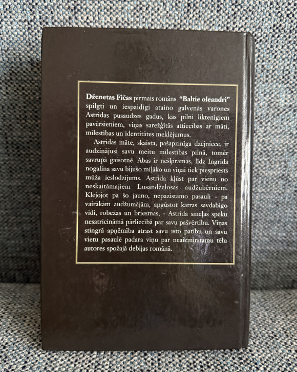 “Nakts maģija, tas skanēja skaisti. Pēc diviem mēnešiem man būs trīspadsmit gadu, un drīz es pieņemšu mīļākos, bet pēc tam uzrakstīšu dzejoli. Paskatījos uz baltajiem oleandriem, kurus viņa šorīt bija sakārtojusi vāzē uz kafijas galdiņa, trīs ziedi simbolizēja debesis, cilvēku un zemi, un es domāju par viņu balsu mūziku tumsā, par viņu klusajiem smiekliem, par smaržnūjiņu dvesmu. | |