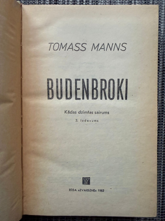 | Grāmata “Budenbroki” (Tomass Manns, 1901) ir klasisks romāns par vācu tirgotāju dzimtas uzplaukumu un sabrukumu 19. gadsimtā. Darbība aptver četras paaudzes, atklājot ģimenes dzīvi, vērtību krīzi un sabiedrības pārmaiņas uz vēsturisko notikumu fona. Darbs ir reālisma un agrīnā modernisma paraugs, par kuru Manns saņēma Nobela prēmiju literatūrā. | |