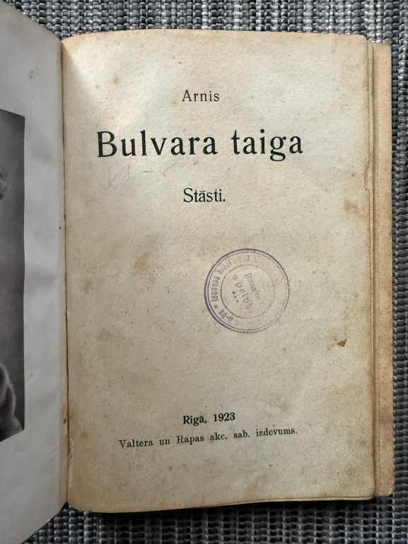 | Grāmata “Bulvāra taiga” ir stāstu krājums, ko sarakstījis Ernests Arnis un izdevis Valters un Rapa 1923. gadā. Tā atspoguļo 20. gadsimta 20. gadu Rīgas dzīvi, bulvāru vidi un sabiedrības kontrastus, izmantojot satīru un filozofiskas pārdomas par cilvēku likteņiem un vērtībām. | |