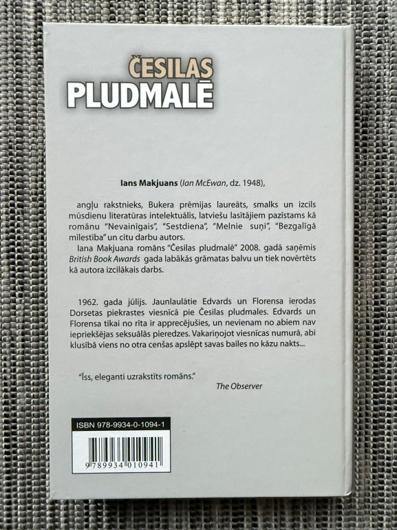 | „Česilas pludmalē” (angļu val. On Chesil Beach) ir Iana Makjuana romāns par jaunu pāri 1960. gadu Anglijā. Stāsts koncentrējas uz vienas nakts traģēdiju, komunikācijas trūkumu un neizmantotām iespējām mīlestībā, atklājot intimitātes un emociju sarežģītību. | |