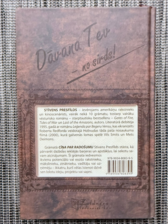 | Spēcīgs pašpalīdzības rokasgrāmata radošiem cilvēkiem, kas atmasko iekšējo Pretestību – bailes, paššaustīšanu, prokrastināciju – un piedāvā skaidru ceļu tai pāri. Autors aicina „pārslēgties profesionāļa režīmā” – strādāt disciplinēti katru dienu, valdīt savas zemapziņas barjeras un atvērt sevi iedvesmai no „Mūzas” | |
