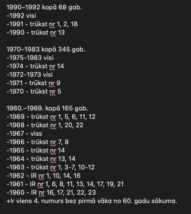 | 1 eiro gabalā, vairumā lētāk. Konkrētie numuri trešajā attēlā. Vairāk vai mazāk pārstāvēts periods 1960.–1983., pēc tam ir arī 1990.–1992. | |