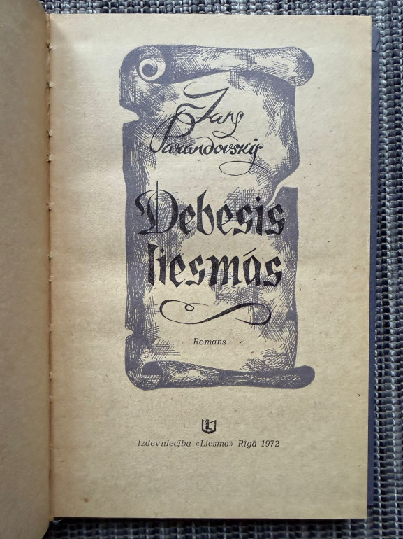 | Jans Parandovskis – “Debesis liesmās” (1972). Romāns, tulkots no poļu valodas (tulk. Jezups Laganovskis), izdots izdevniecībā Liesma, 253 lpp. Darbs atspoguļo autora raksturīgo stilu un kultūras tematiku. | |