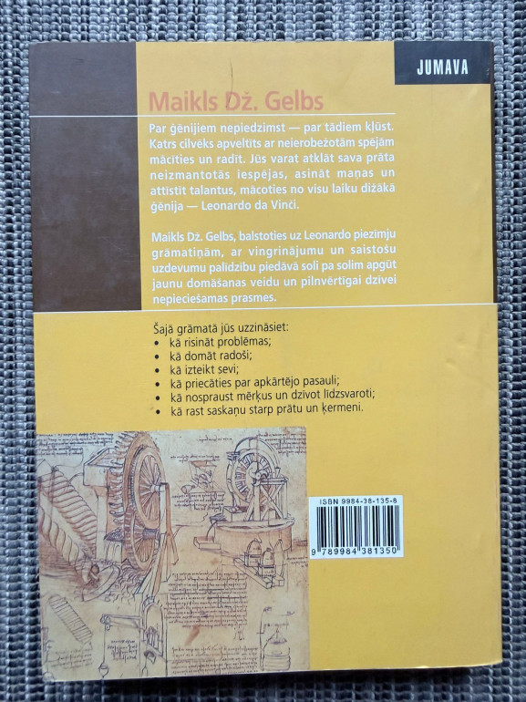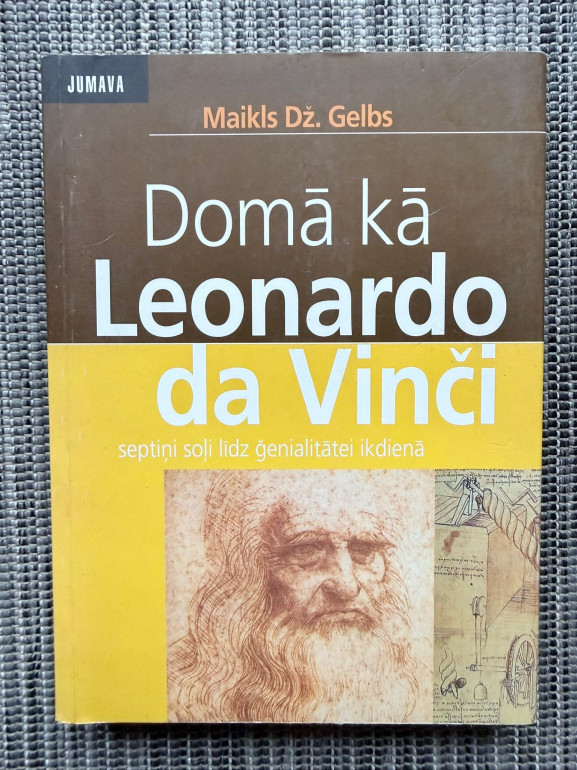| “Domā kā Leonardo da Vinči” ir Maikla Dž. Gelba ceļvedis radošuma attīstīšanai, piedāvājot 7 soļus, kas palīdz trenēt zinātkāri, iztēli un kritisko domāšanu. Grāmata iedvesmo atklāt ģenialitāti ikdienā, balstoties uz Leonardo dzīves principiem. | |
