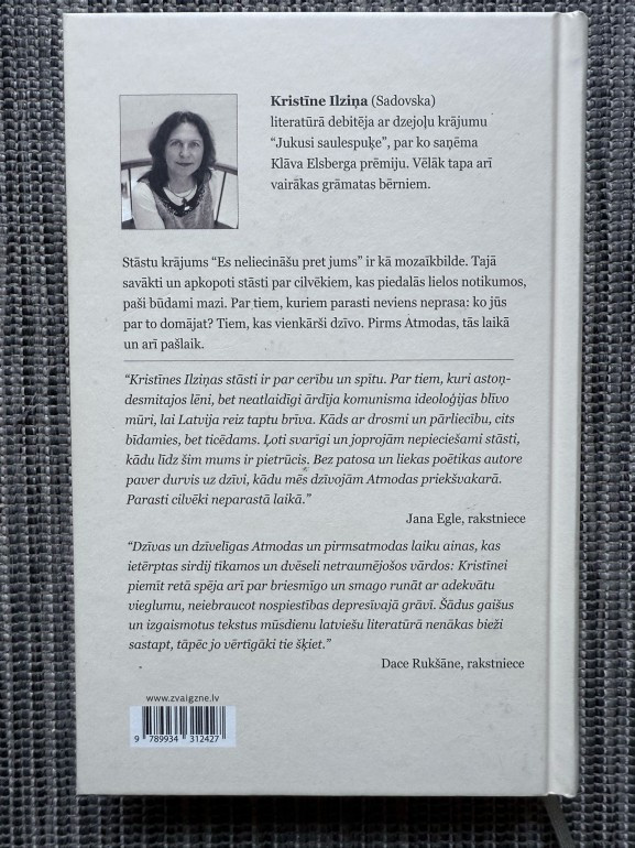 | “Kristīnes Ilziņas stāsti ir par cerību un spītu. Par tiem, kuri astoņdesmitajos lēni, bet neatlaidīgi ārdīja komunisma ideoloģijas blīvo mūri, lai Latvija reiz taptu brīva. Kāds ar drosmi un pārliecību, cits bīdamies, bet ticēdams. Ļoti svarīgi un joprojām nepieciešami stāsti, kādu līdz šim mums ir pietrūcis. Bez patosa un liekas poētikas autore paver durvis uz dzīvi, kādu mēs dzīvojām Atmodas pr | |