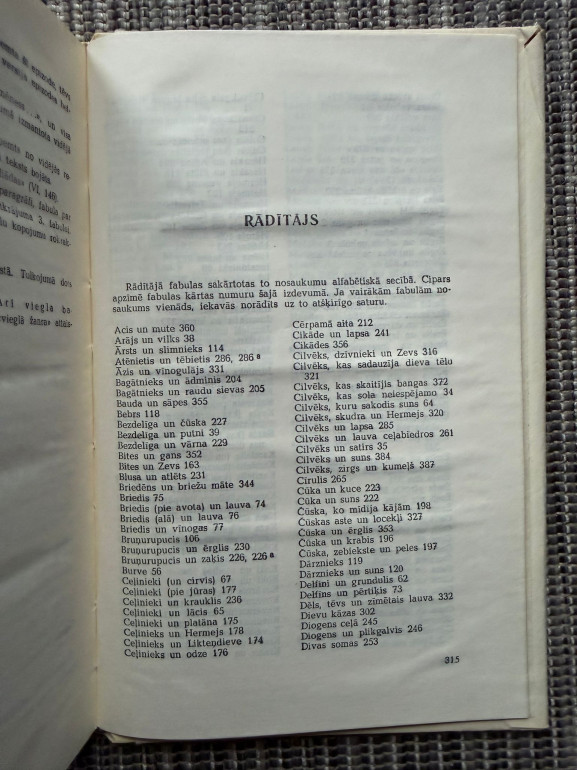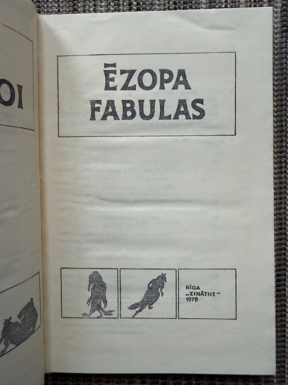 | Grāmata “Ēzopa fabulas” ir sengrieķu fabulista Ēzopa darbi, kas uzskatāmi par fabulas žanra pirmsākumiem. Tajās dzīvnieki un priekšmeti runā un rīkojas kā cilvēki, sniedzot alegoriskas pamācības par dzīvi, gudrību un morāli. Krājumā apkopotas ap 400 fabulas, kas cauri gadsimtiem saglabājušas aktualitāti un ietekmējušas literatūru un kultūru. | |