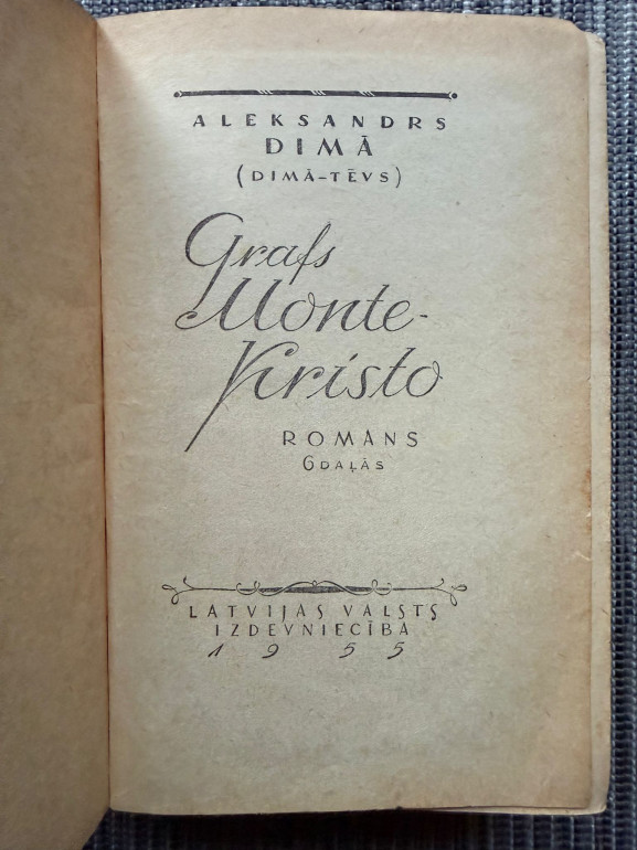 | Grāmata “Grāfs Monte Kristo” (Aleksandrs Dimā, 1844–1845) ir viens no slavenākajiem piedzīvojumu romāniem pasaules literatūrē. Tā stāsta par Edmondu Dantesu – jaunu jūrnieku, kuru nodevīgi apmelo un iesloga Ifas cietoksnī. Pēc gadiem viņš izbēg, atrod milzīgu dārgumu un, kļūstot par noslēpumaino grāfu Monte Kristo, īsteno atriebību pret saviem ienaidniekiem. Romānā savijas tēmas par taisnīgumu, at | |