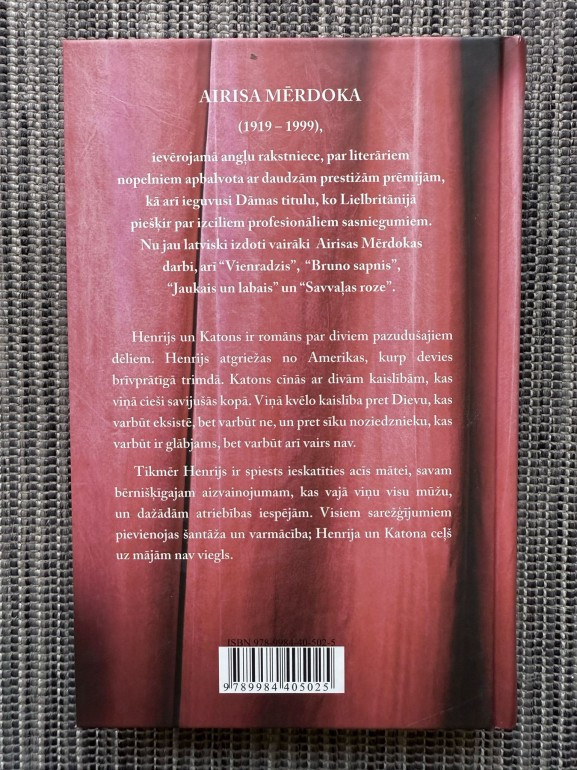 | Airisas Mērdokas romāns "Henrijs un Katons" ir dziļš psiholoģisks stāsts par diviem brāļiem – Henriju, kas atgriežas no Amerikas, un Katonu, kurš cīnās ar reliģiskām un kriminālām kaislībām. Romāns atklāj sarežģītas attiecības, vainas apziņu, šantāžu un ceļu uz izlīgumu ģimenē. | |