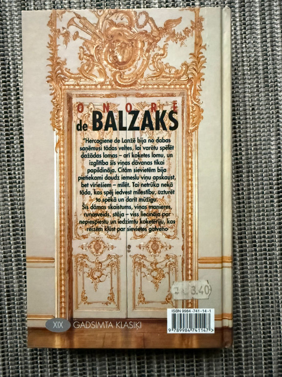 | “Hercogiene de Lanžē” (Onorē de Balzaks) ir romāns no cikla Cilvēciskā komēdija, kas atklāj kaislību, varas un sabiedrības spēles 19. gadsimta Parīzē. Stāsts par mīlestību, lepnumu un intrigu, kur aristokrātijas spožums slēpj traģiskas likteņa pavērsienus. | |