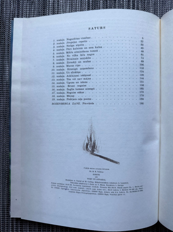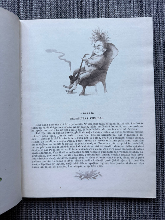 Grāmata "Hobits jeb turp un atpakaļ" (Dž.R.R. Tolkīns) ir fantāzijas klasika, kas stāsta par hobitu Bilbo Baginsu, kurš pamet savu mierīgo dzīvi, lai dotos piedzīvojumu pilnā ceļojumā kopā ar burvi Gandalfu un trīspadsmit rūķiem. Viņu mērķis — atgūt rūķu dārgumus no bīstamā pūķa Smoga. Ceļā Bilbo sastop troļļus, goblinus, elfi un citus Viduszemes radījumus, atklājot sevī drosmi un gudrību. | |