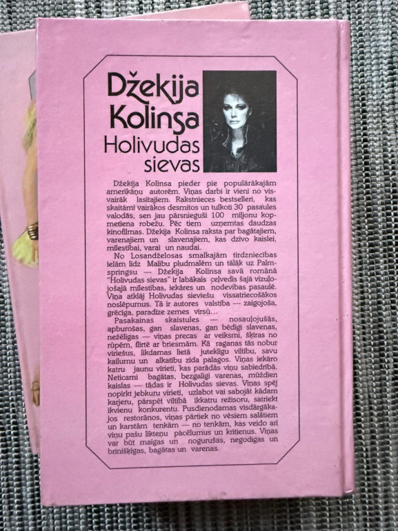 | “Holivudas sievas” (1983) – Džekijas Kolinzas visveiksmīgākais romāns par Holivudas sievietēm, kur glamūrs mijas ar intrīgām un attiecību krīzēm. Pārdots >15 milj. eksemplāru, aizsāka “Hollywood” ciklu un 1985. gadā ekranizēts kā ABC miniseriāls. | |