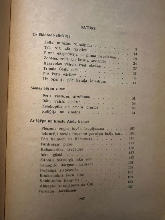 Grāmata par spāņu konkistadoru iekarojumiem Dienvidamerikā, inku impērijas sagrāvi un koloniālisma dzimšanu. Balstīta uz hronikām un vēsturnieku pētījumiem, atklāj zelta kāres nežēlīgo seju | |