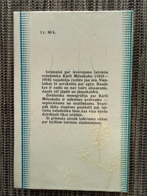 | Zinātnisks pētījums par izcilo latviešu valodnieku Kārli Mīlenbahu, viņa darbiem un nozīmi latviešu valodas attīstībā. Analizē sintakses aprakstu un valodniecības tradīcijas. | |
