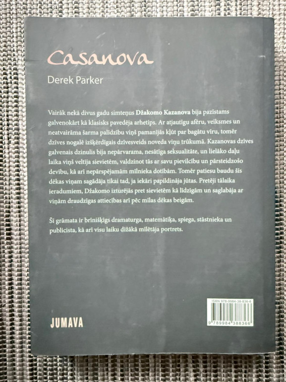 | Vairāk nekā divus gadsimtus Kazanova pazīstams kā klasisks pavedējs. Ar atjautību, veiksmi un šarmu viņš kļuva turīgs, taču izšķērdība dzīves nogalē atveda trūkumā. Viņa dzinulis — nesātīga iekāre, tomēr patieso baudu deva jūtas. Pret laikmeta ieradumiem viņš cienīja sievietes, saglabāja draudzību; grāmata portretē dramaturgu, matemātiķi, spiegu, stāstnieku, publicistu. | |