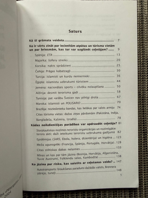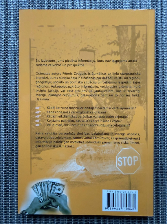 | Grāmata “Ko Jums neteiks Jūsu ceļojuma aģentūra?” ir žurnālista Pētera Zvaguļa praktisks ceļojumu padomu un drošības baušļu krājums ar maršrutiem un brīdinājumiem, kas neparādās ceļvežos: reālistiski skaidrojumi par valstīm, riskiem un uzvedības pamatnoteikumiem ceļā | |