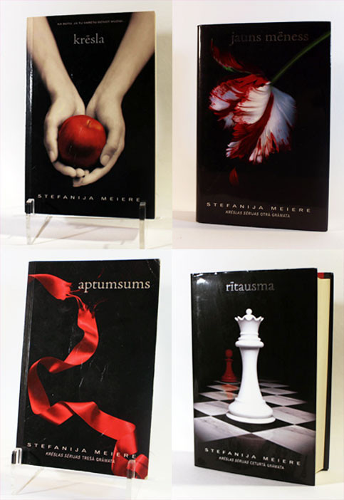| Stefānijas Meieres “Krēslas” cikls četru grāmatu garumā stāsta par Bellas Svonas iekļūšanu vampīru un vilkaču pasaulē. Tajā attēlotas viņas attiecības ar Edvardu Kalenu, izvēles starp cilvēka un pārdabisku dzīvi, kā arī konflikti, kas nosaka abu nākotni mainīgā un bīstamā vidē. | |