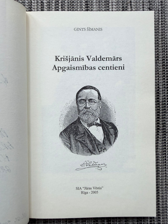 | Krišjānis Valdemārs: apgaismības centieni ir Ginta Šīmaņa grāmata, kas stāsta par Krišjāni Valdemāru un viņa darbu latviešu kultūras un izglītības attīstībā 19. gadsimtā. Grāmata ir īpaša ar detalizētu vēsturisko izpēti un skaidrojumu par Valdemāra ieguldījumu apgaismības ideju popularizēšanā Latvijā. | |