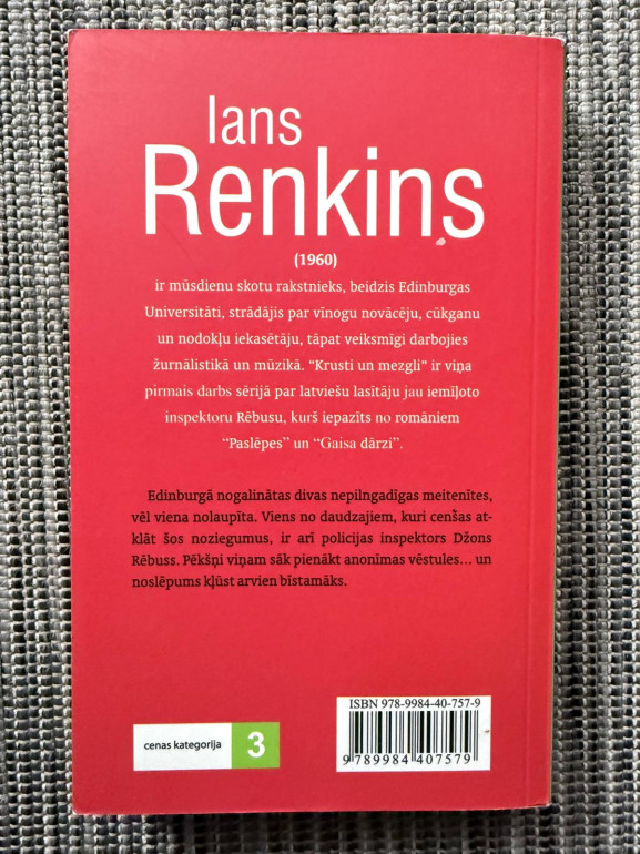 | Grāmata “Krusti un mezgli” ir pirmais inspektora Džona Rēbusa romāns: Edinburgā tiek nolaupītas un nogalinātas meitenes, bet Rēbusam sāk pienākt anonīmas vēstules, kas savādi saistās ar viņa pagātni. Tumšs, spriegs stāsts par vainas apziņu, atmiņām un pilsētas ēnām | |
