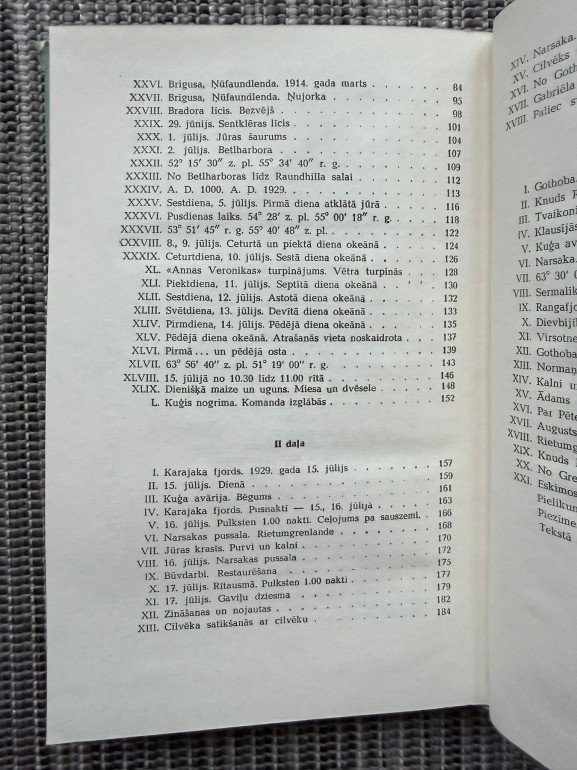 | Autobiogrāfisks stāsts par ceļojumu ar jahtu uz Grenlandi. Trīs vīri cīnās ar vētrām un navigācijas grūtībām, atklāj Arktikas skaistumu un eskimosu dzīvi. Piedzīvojumi, dabas apraksti un autora ilustrācijas. | |
