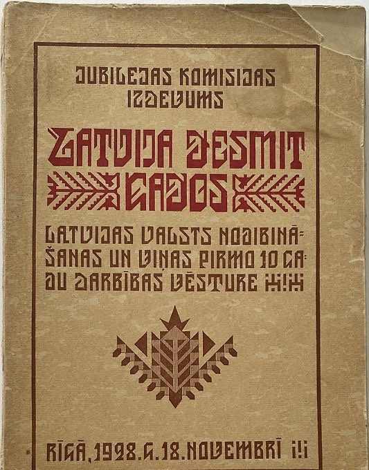 | Latvija desmit gados" . Tas ir Jubilejas komisijas izdots izdevums, kurā detalizēti aprakstīta Latvijas valsts dibināšanas vēsture un tās pirmie 10 darbības gadi. Nosaukums: "Latvija desmit gados" Izdevējs: Jubilejas komisija Tēma: Latvijas valsts dibināšanas vēsture un tās pirmā desmitgade Datums: 1928. gada 18. novembris, Rīga | |