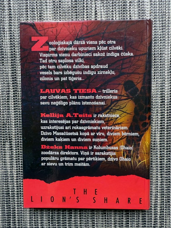 | “Lauvas tiesa” ir zooloģisks trilleris: veterinārs Mak Makintairs nonāk slepkavību ķēdes epicentrā, kur “ieroči” ir apdraudētie dzīvnieki. Izmeklēšana ved cauri kontrabandai, zooloģijas aizkulisēm un dabas aizsardzības spriedzei. (Autori: Kellija A. Teita un Džeks Hanna.) | |
