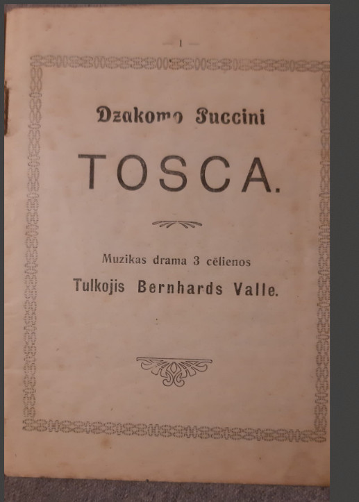 | 1922.g. Liepājas operas TOSCA anotācija, kurā ir ļoti daudz vietējo uzņēmēju reklāmas | |