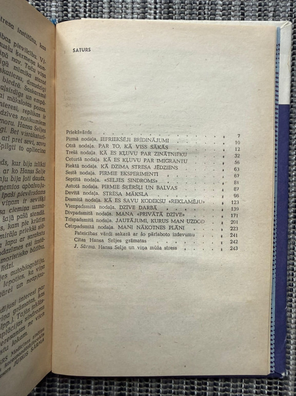 | "Mana mūža stress" ir Hansa Seljes autobiogrāfisks un populārzinātnisks darbs, kurā viņš apraksta savas teorijas par stresu rašanos un attīstību. Grāmatā skaidrots vispārējā pielāgošanās sindroms, stresa ietekme uz veselību, kā arī autora dzīves ceļš un altruistiskā egoisma ideja. Tā ir gan zinātnes, gan personības stāsts. | |