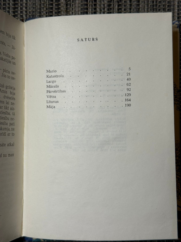 | “Mārsils” (Dagnija Zigmonte) – romāns par cilvēku attiecību pārmaiņām un ideālu sadursmi ar laikmeta sociālpolitiskajiem apstākļiem. Autore savieno romantisku skatījumu ar reālistisku vidi, izmantojot dabas ainas un liriskas atkāpes. | |