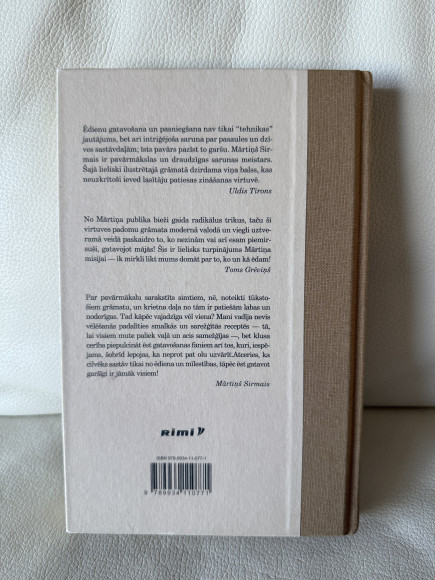 | Grāmata, kurā Mārtiņš Sirmais sev raksturīgā manierē dalās virtuves pasaules noslēpumos, sniedz padomus, kā atšķirt vienu produktu no otra, kā tos apstrādāt gatavošanai, kā panākt, lai konkrētais produkts iegūtu neaizstājamu garšu. Atraktīvais pavārs apkopojis arī receptes, kas būtu jāzina ikkatram. Grāmata strukturēta nodaļās. | |