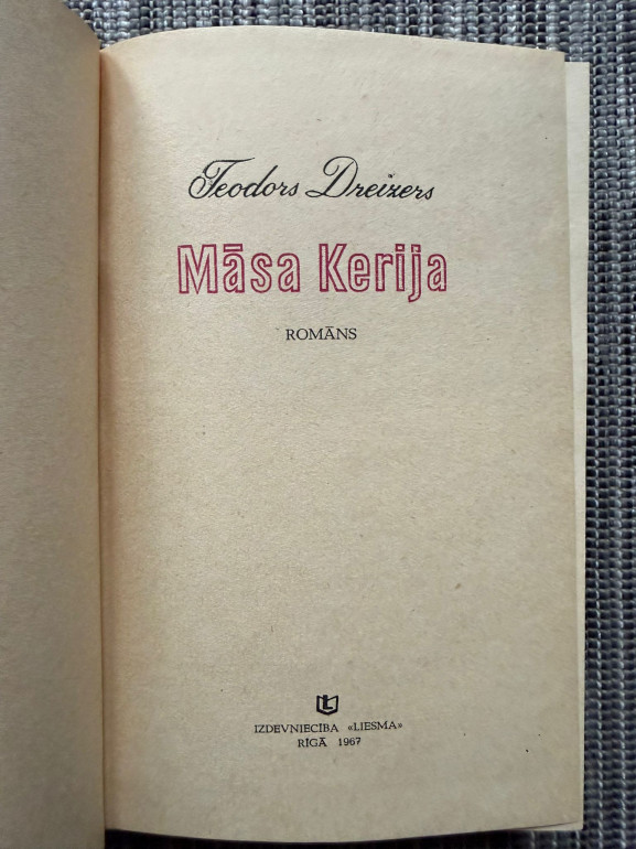 | "Māsa Kerija" ir Teodora Dreizera debijas romāns par jaunu sievieti Karolīnu Mīberi, kas no provinces dodas uz Čikāgu meklēt labāku dzīvi. Viņas ceļš ir pilns izaicinājumu, attiecību un pašizaugsmes. Romāns kritiski atspoguļo amerikāņu sapņa ilūziju un sabiedrības morāli. | |