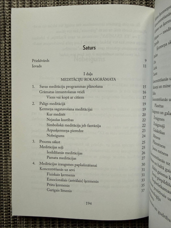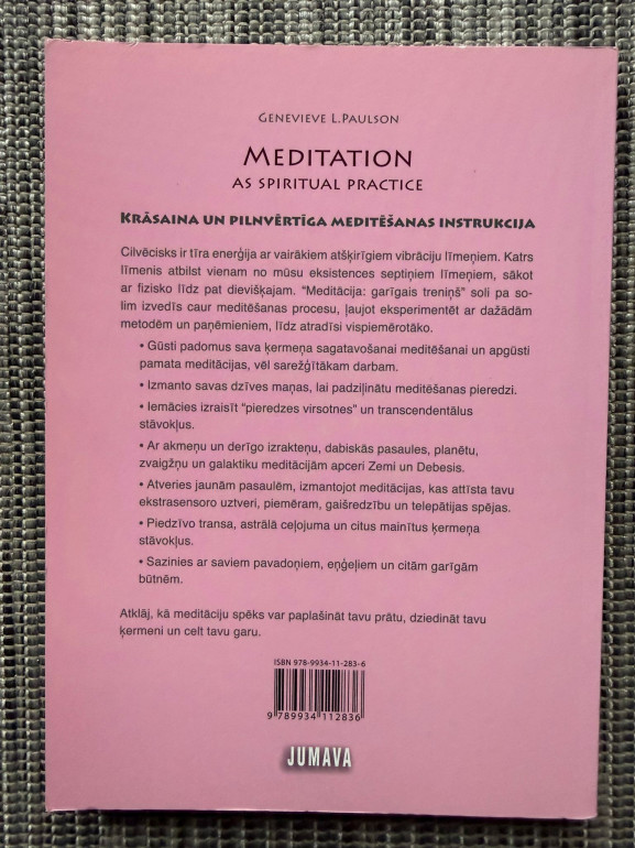 | “Meditācija, garīgais treniņš” ir Ženevjēvas L. Polsones ceļvedis meditācijas praksē. Grāmata māca, kā ar vienkāršiem vingrinājumiem attīstīt iekšējo mieru, koncentrēšanos un garīgo spēku, lai ikdienā justos harmoniski un līdzsvaroti. | |