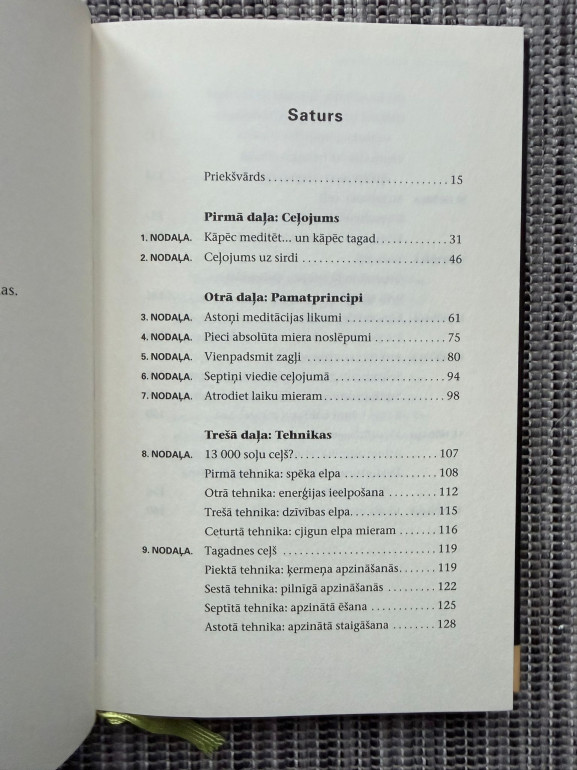 | Šī grāmata piedāvā vienkāršas, praktiskas meditācijas tehnikas, ko var izmantot ikdienas steigas un stresa brīžos. Autors māca, kā īsos mirkļos atgūt mieru, koncentrēšanos un līdzsvaru, izmantojot elpošanu, apzinātību un meditācijas vingrinājumus, kas piemēroti pat aizņemtam grafikam. | |
