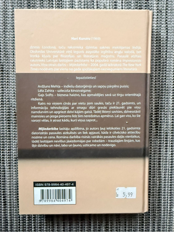 | „Mijiedarbība” ir Hari Kunzru romāns par identitāti, globalizāciju un tehnoloģiju ietekmi uz cilvēku attiecībām. Stāsts savij vairākus varoņus un likteņus, parādot, kā nejaušas saiknes un informācijas plūsma mūsdienu pasaulē maina cilvēku dzīves. | |