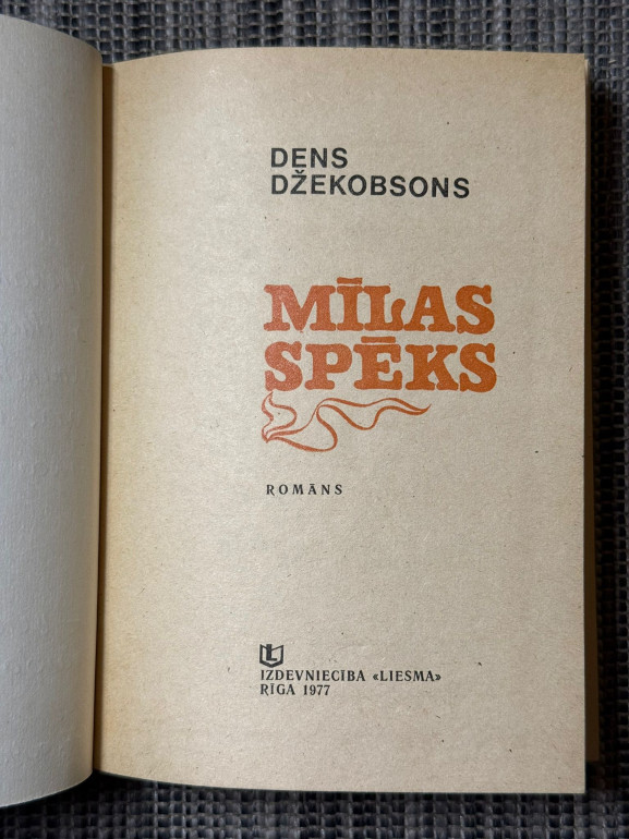 | “Mīlas spēks” (Dens Džekobsons) – romāns par cilvēku attiecībām, mīlestības spēku un morāles dilemmām. Autors atklāj emocionālo pasauli un izvēles, kas nosaka likteņus. Izdots 1977. gadā izdevniecībā “Liesma”, 287 | |