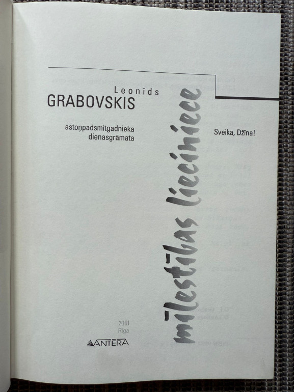 | "Mīlestības lieciniece" ir Latvijas Nacionālā teātra aktiera Leonīda Grabovska dienasgrāmatas, rakstītas 18–19 gadu vecumā. Atklāts un pašironisks skatījums uz jaunības meklējumiem, mīlestību, garastāvokļa maiņām un alkām pēc mākslinieciskas izaugsmes. Grāmata ir personisks ceļš uz sevis izpratni un patiesību. | |