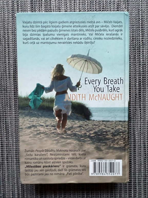 | Grāmata “Mīlestības pieskāriens” (latviešu izdevums no Every Breath You Take) ir romantisks trilleris par Čikāgas restorāna īpašnieci Keitu un noslēpumaino miljardieri Mičelu; īsa idille tropu salā pārvēršas par bīstamu spēli ar augstākās sabiedrības noslēpumiem un slepkavības izmeklēšanu. | |